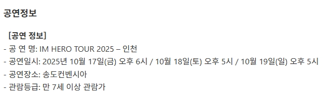 ‘IM HERO’ 콘서트의 공식 일정과 예매 정보를 한눈에 확인하세요.