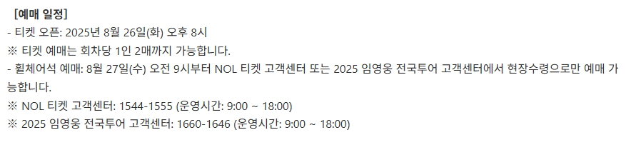 임영웅 콘서트 일정표 티켓팅 예매방법 총정리 2025